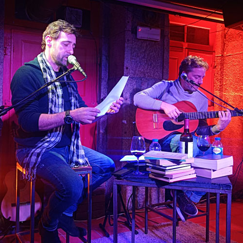 O Pedro convidou-me para ir dizer um poema e tocar um tema.